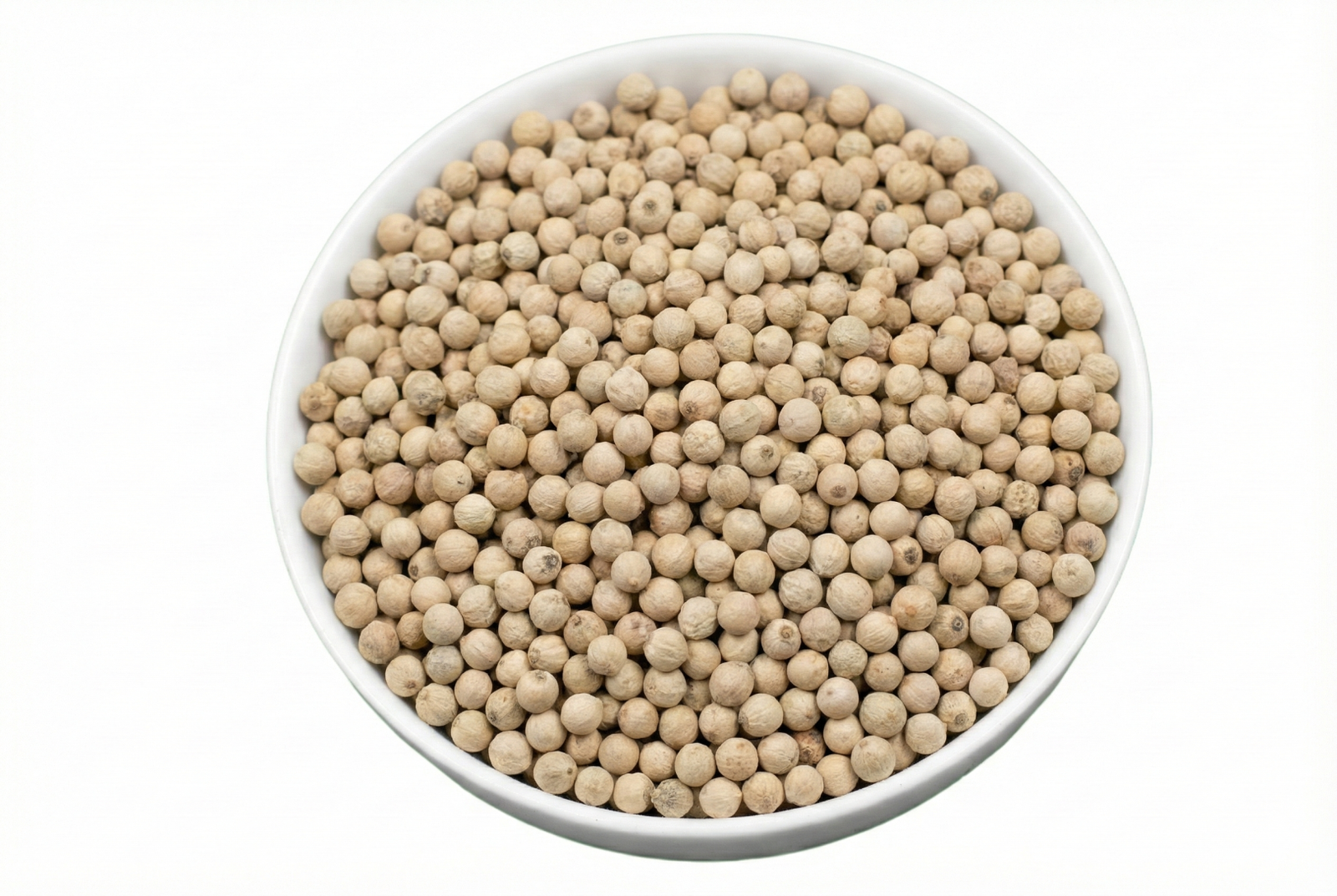 | 1 | Appearance | Whole, round, wrinkled, and off-white to creamy white peppercorns |